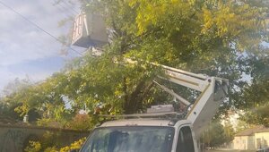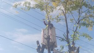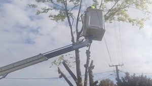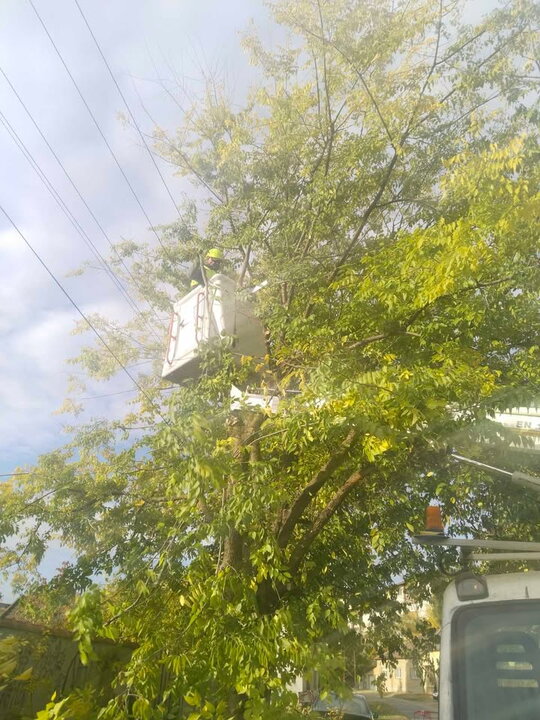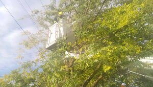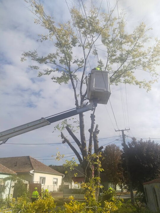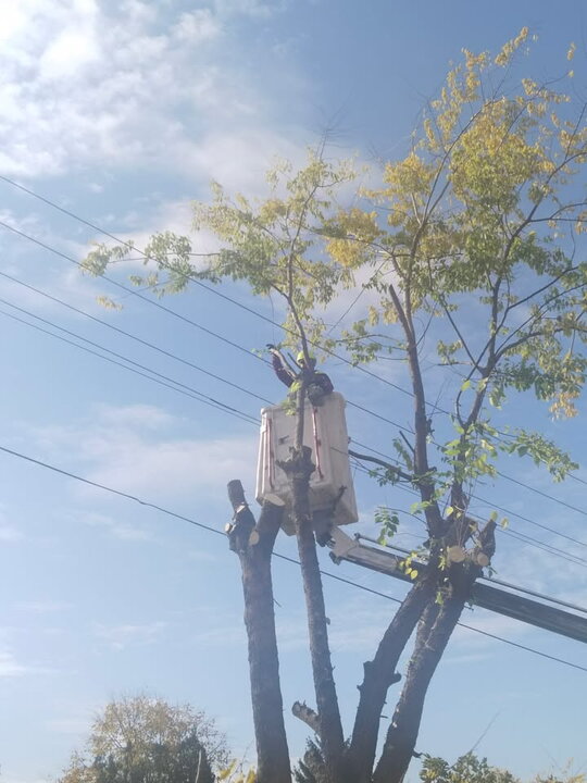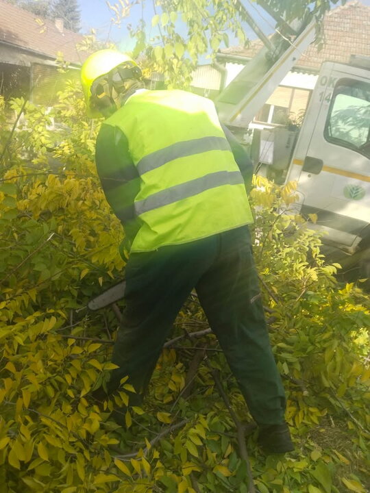Po dobijenom inspekcijskom rešenju, radnici RJ „Zelenilo“ vrše orezivanje stabala ispod elektro-energetskih vodova u ul. Save Kovačevića u Subotici.