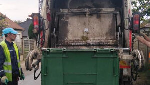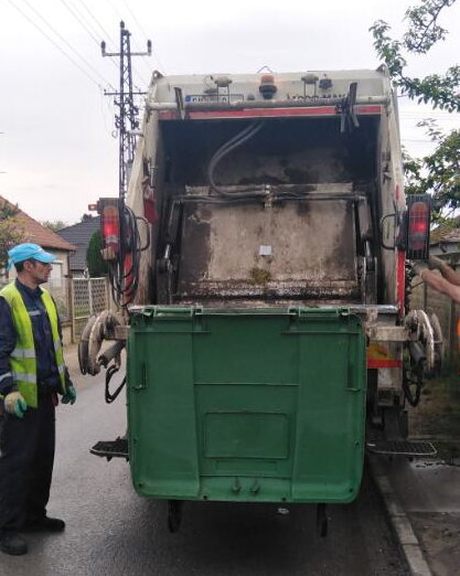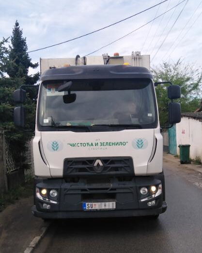 Ovo je samo jedna od ekipa RJ „Odvoženje komunalnog otpada“ na pražnjenju tipskih kanti zapremine 120 litara i kontejnera 1,1 m³ i odnošenju smeća na Karađorđevom putu u Subotici.