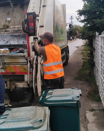 Pražnjenje plavih kanti zapremine 120 litara namenjenih primarnoj selekciji reciklabilnog otpada - metalna ambalaža (konzerve i limenke), papir i karton, kao i sve vrste plastične ambalaže u MZ „Makova sedmica“ u Subotici.