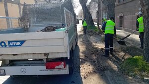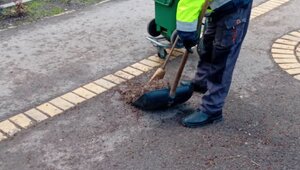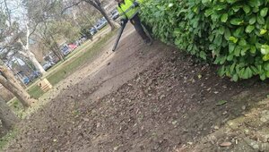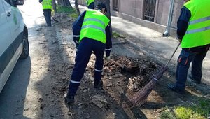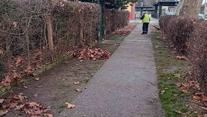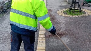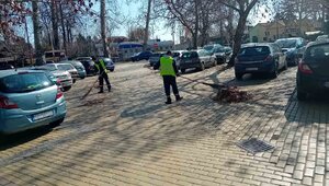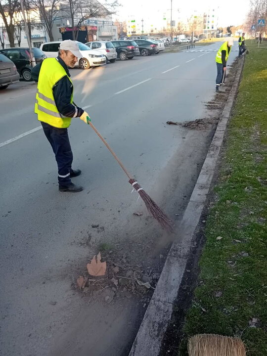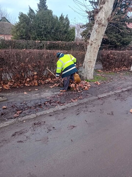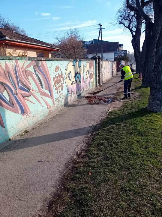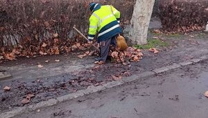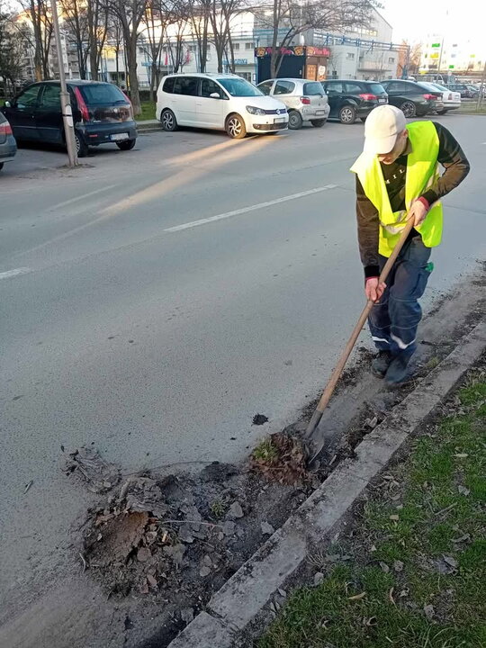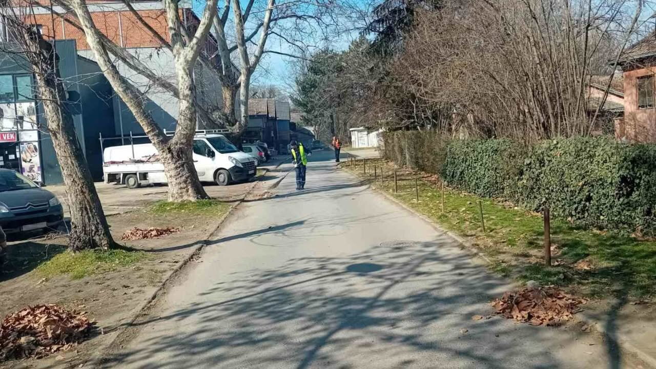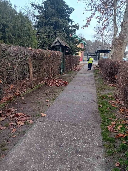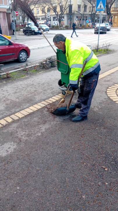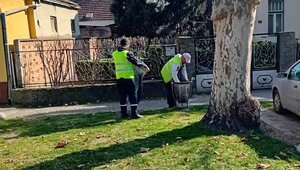 Ekipa RJ „Higijena grada“ angažovana na skupljanu preostalog suvog opalog lišća i uređenju trotoara na Segedinskom putu u Subotici.