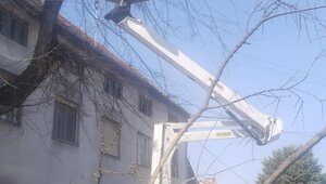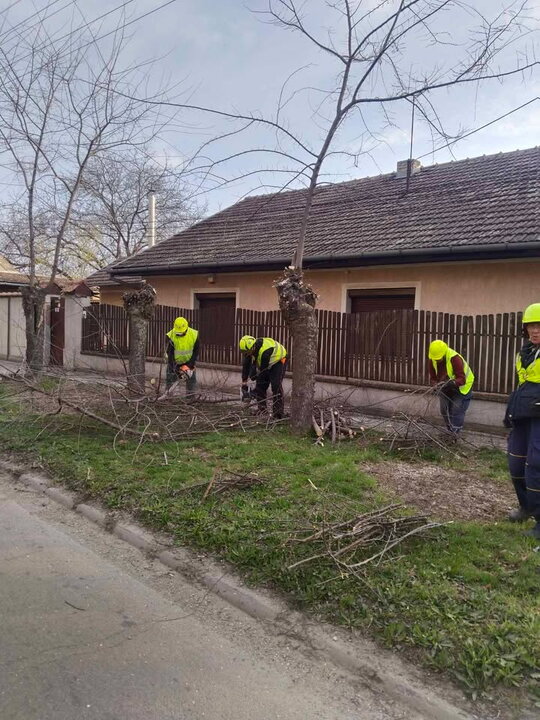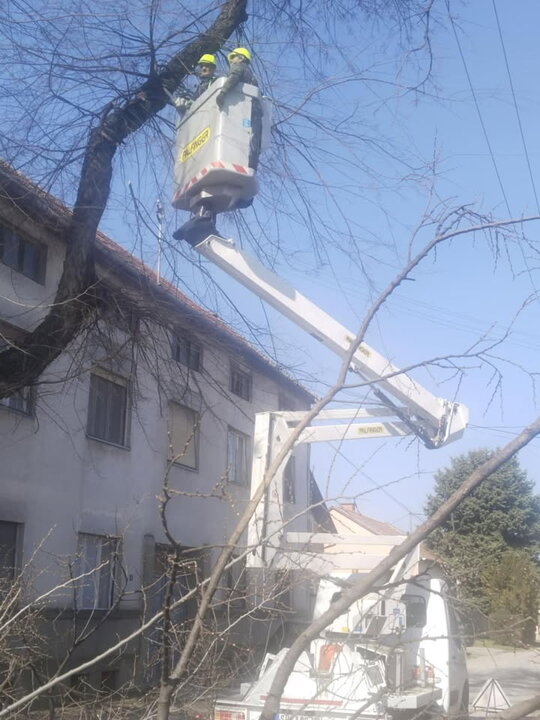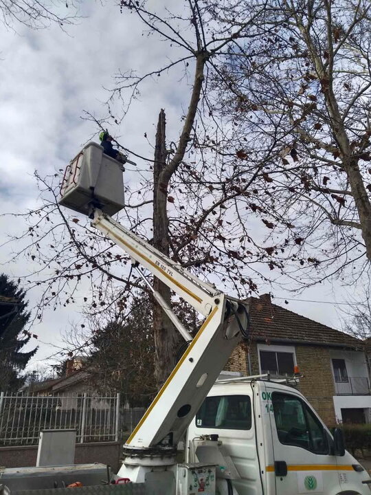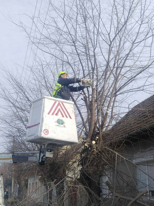 Po dobijenom inspekcijskom rešenju, radnici RJ „Zelenilo“ vrše orezivanje stabala ispod elektro-energetskih vodova u ul. Save Kovačevića u Subotici.