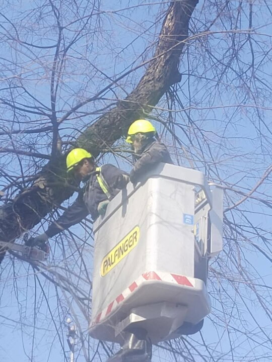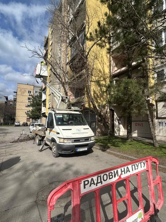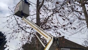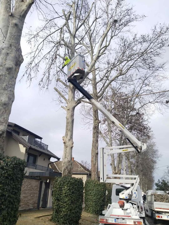 Po dobijenom inspekcijskom rešenju, radnici RJ „Zelenilo“ vrše orezivanje stabala ispod elektro-energetskih vodova u Praškoj ulici u Subotici.