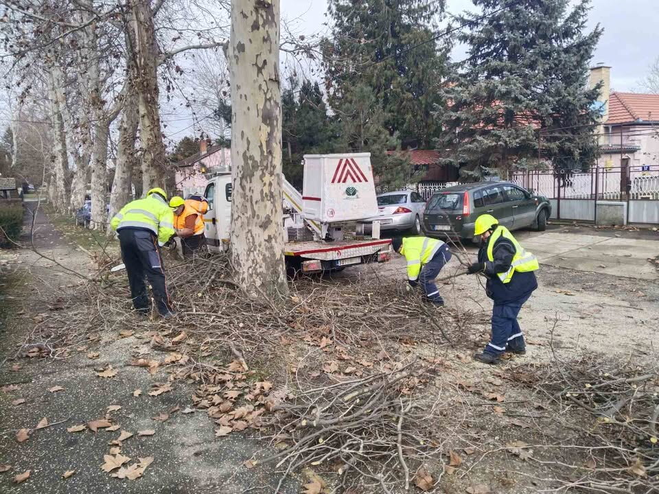 Ekipa RJ „Zelenilo“ angažovana na poslovima zimskog orezivanja grana stabala gelegunja u ulici Ive Lole Ribara u Subotici.