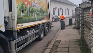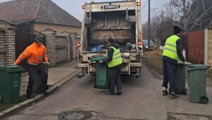 Ovo je samo jedna od ekipa RJ „Odvoženje komunalnog otpada“ na pražnjenju tipskih kanti zapremine 120 litara i kontejnera 1,1 m³ i odnošenju smeća na Karađorđevom putu u Subotici.