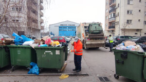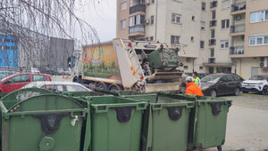 Pražnjenje plavih kanti zapremine 120 litara namenjenih primarnoj selekciji reciklabilnog otpada - metalna ambalaža (konzerve i limenke), papir i karton, kao i sve vrste plastične ambalaže u ulici Ivana Antunovića u Subotici.