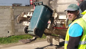 Pražnjenje plavih kanti zapremine 120 litara namenjenih primarnoj selekciji reciklabilnog otpada - metalna ambalaža (konzerve i limenke), papir i karton, kao i sve vrste plastične ambalaže u ulici Petra Horvatskog u Subotici.