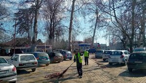 Ekipa RJ „Higijena grada“ angažovana na čišćenju autobuskog stajališta kod Nove opštine u Subotici.