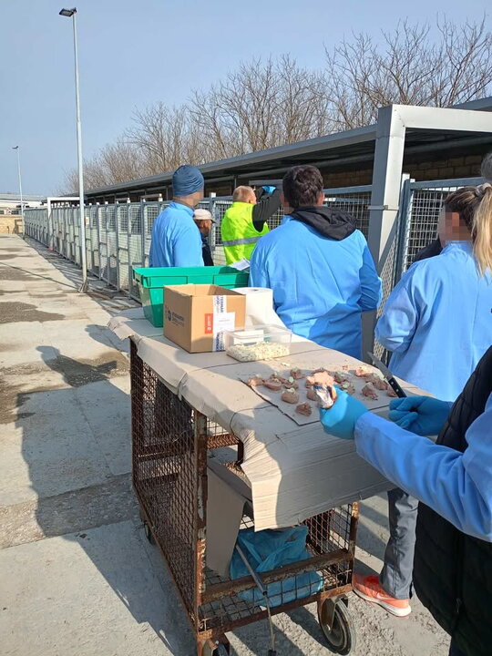 Pražnjenje plavih kanti zapremine 120 litara namenjenih primarnoj selekciji reciklabilnog otpada - metalna ambalaža (konzerve i limenke), papir i karton, kao i sve vrste plastične ambalaže u MZ „Makova sedmica“ u Subotici.