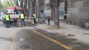 Ekipa RJ „Higijena grada“ angažovana na pranju trotoara i biciklističkih staza oko Gradske kuće u Subotici.